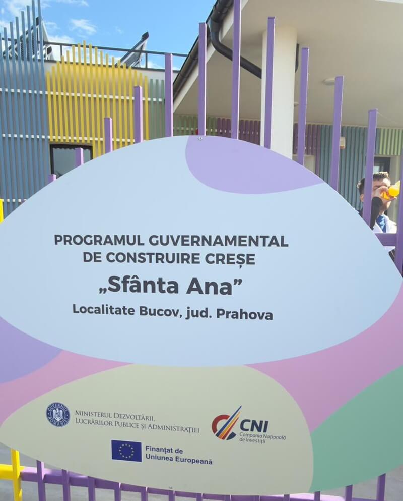 O nouă creșă construită în Prahova, în cadrul Programului național „Sfânta Ana”, a fost inaugurată miercuri. Aceasta are o capacitate de 7 grupe (70 de locuri) și este a patra finalizată în județ de Ministerul Dezvoltării și CNI.
