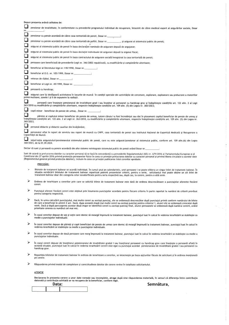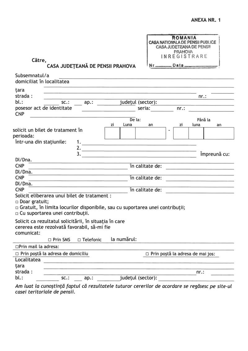 „Cererile pentru bilete de tratament pentru anul 2026 pot fi transmise pe adresa de email office@pensiiprahova.ro  sau pot fi depuse la sediul din Ploiesti, strada Nicolae Iorga nr. 1, ghiseele 9 sau 10, de luni pana vineri, intre orele 8.30-12.30” anunță reprezentanții instituției.