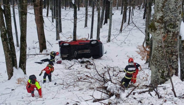 La fața locului, salvatorii au găsit autoturismul răsturnat pe o parte, în afara părții carosabile, la o diferență de nivel de aproximativ 20 de metri. În autoturism se aflau trei ocupanți, toți conștienți, însă încarcerați.