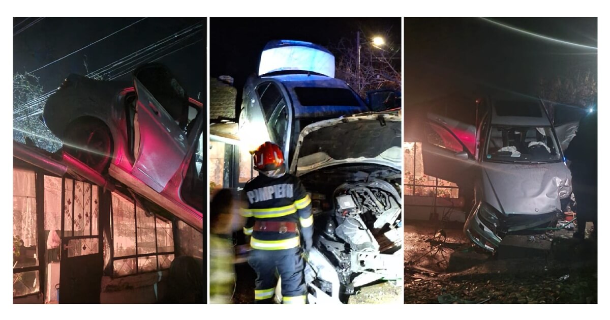 A fost vorba un autoturism care a părăsit partea carosabilă și a ajuns pe acoperișul unei locuințe. În vehicul se aflau patru ocupanți, iar în imobil se afla o persoană. Din fericire, toate cele cinci persoane implicate nu au prezentat probleme medicale.