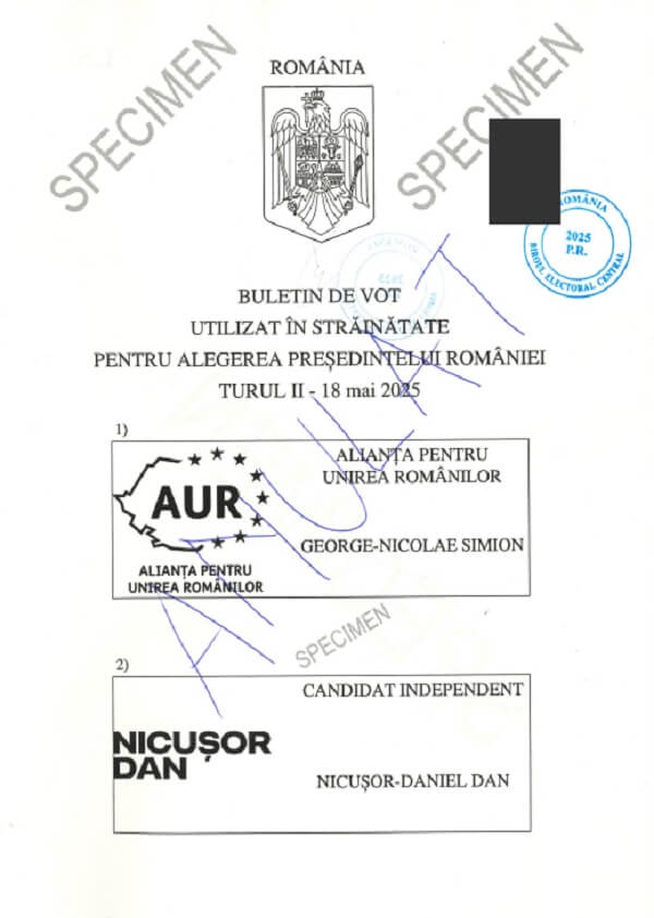 ALEGERI PREZIDENȚIALE - TURUL 2. Biroul Electoral Central a publicat machetele buletinele de vot care vor fi folosite în țară și în străinătate în al doilea tur al scrutinului pentru alegerea președintelui României.